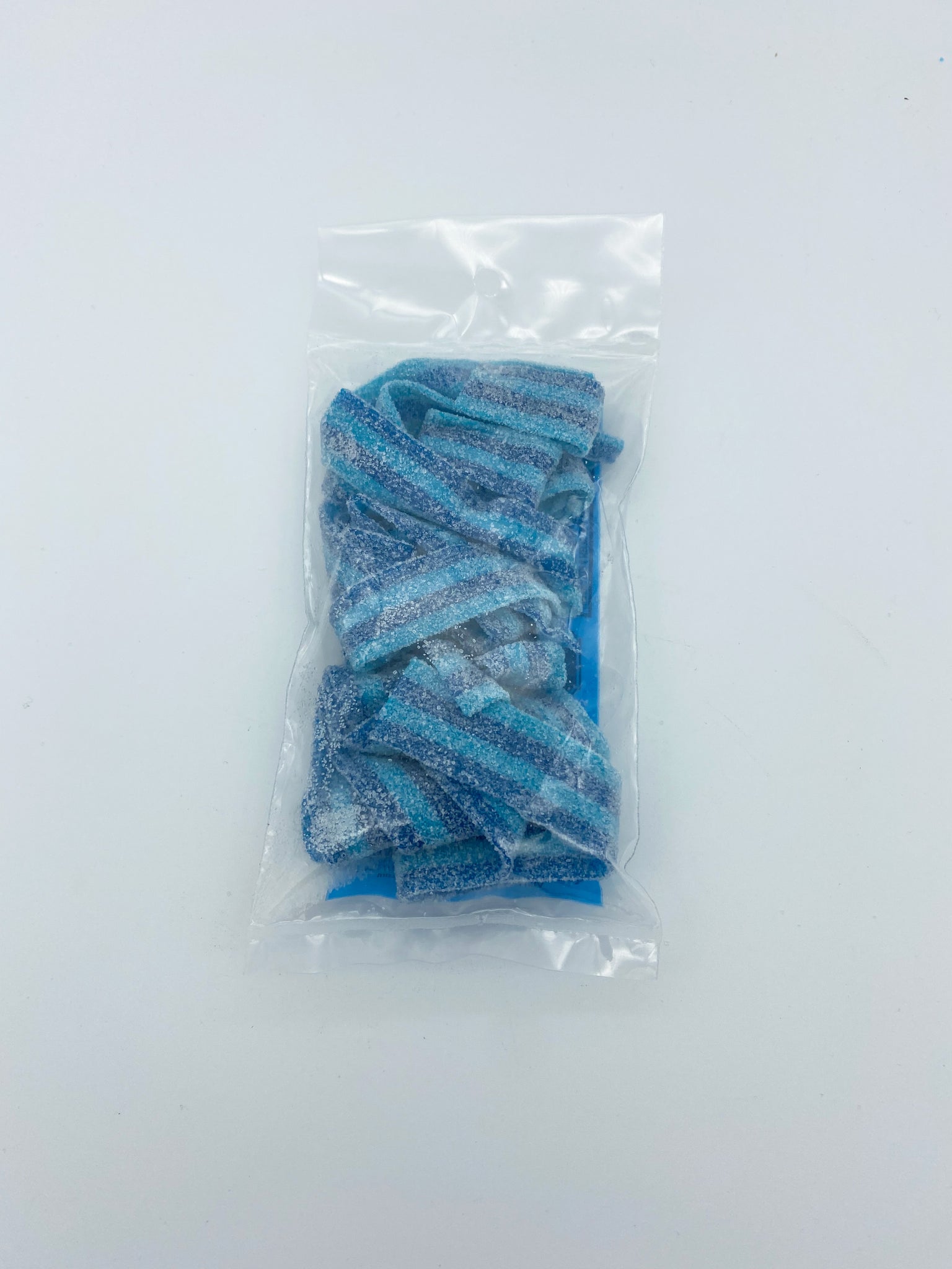 Sour Power Berry Blue Belts are long, stretchy and super sour delicious, in a variety of sized for you from The Penny Candy Store.