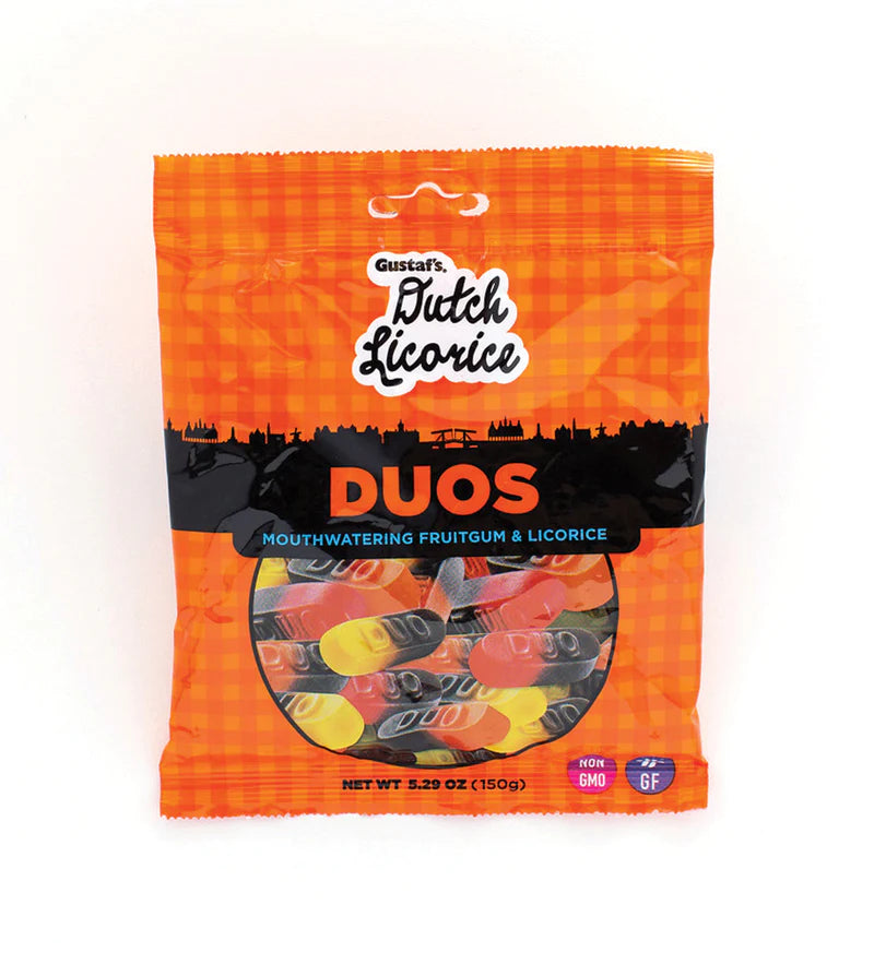 Gustaf’s Duos are a pleasant combination of Dutch Licorice and mouthwatering fruitgum.